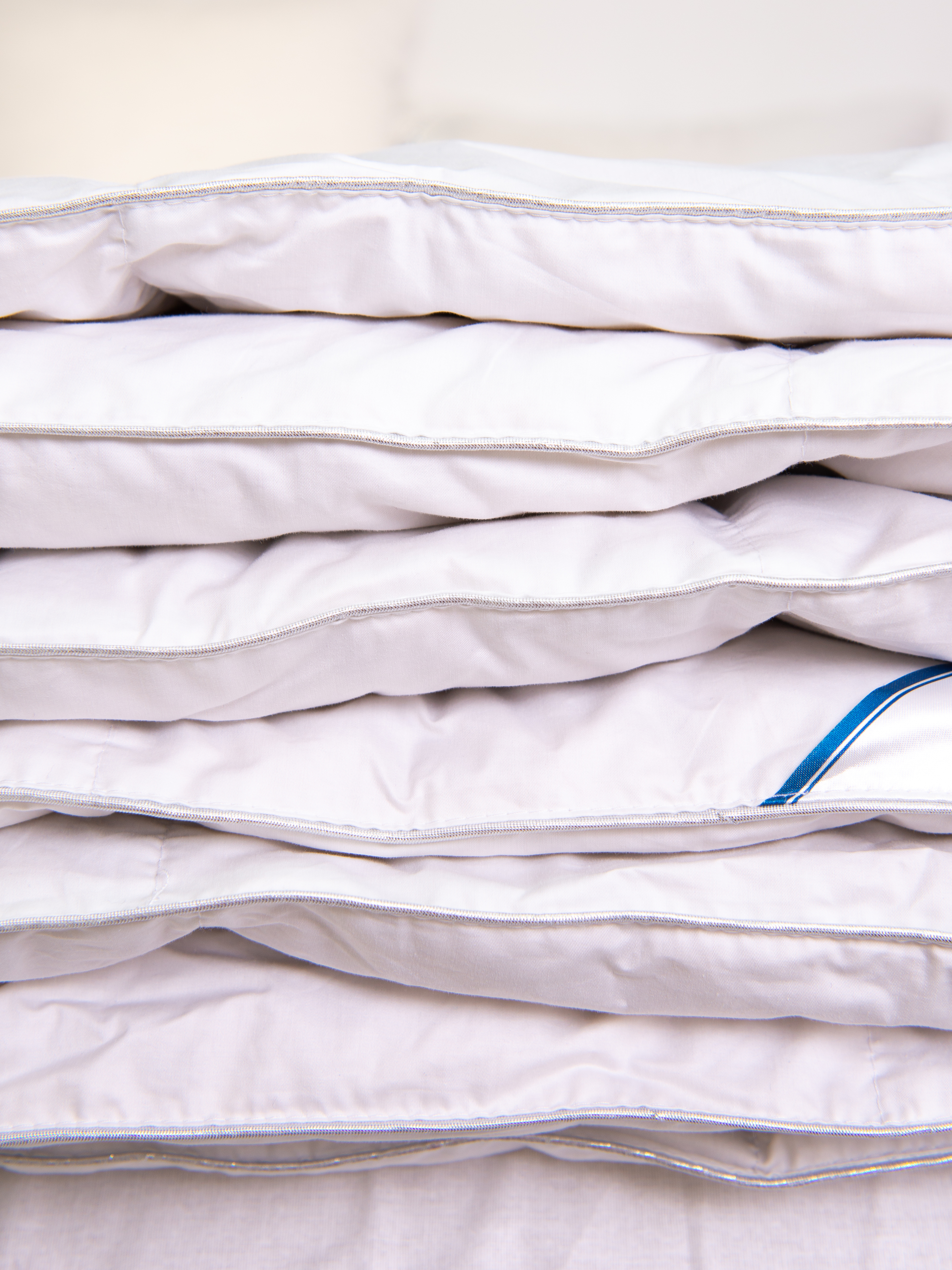 После распаковки встряхните одеяло и дайте ему «подышать» — пух расправится, и одеяло увеличится в объёме до 10 см в высоту.