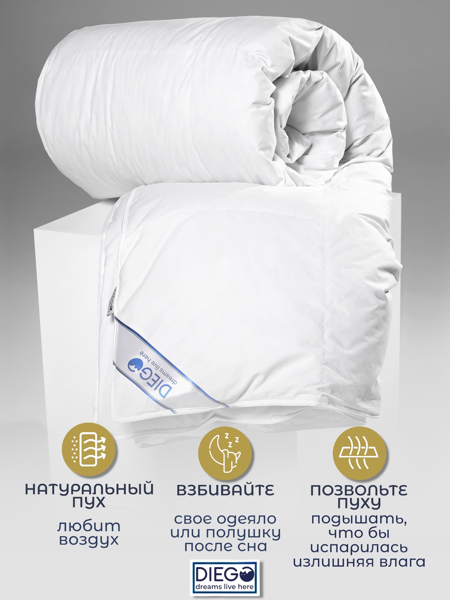 Одеяло «Диана» от Diego — лёгкое, пышное, натуральное и тёплое. Настоящий комфорт круглый год.