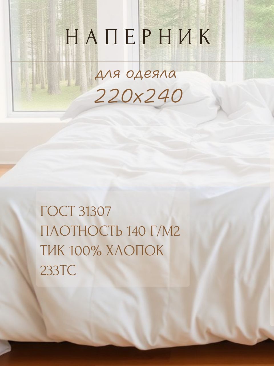 ·       «Супер. Так устала от летающего пуха при смене пододеяльника. Постоянная пыль от пухового одеяла. К качеству претензий нет - тик. швы ровные, молния большая, вшита отлично - незаметно и аккуратно. Качество изделия отличное. Пух держит. Жаль раньше не знала, что такие наперники существуют. К покупке советую.»