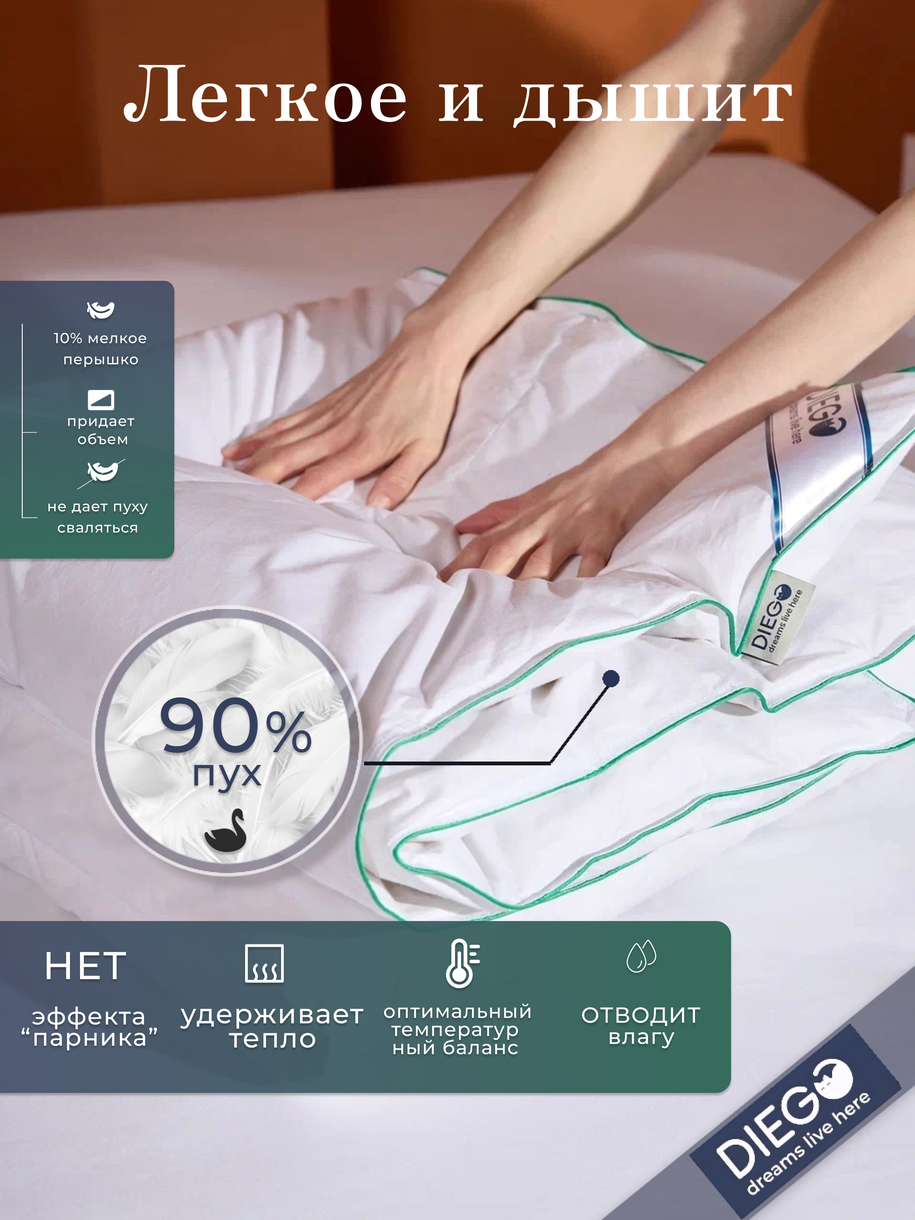 «Летний сон» — самое лёгкое в наших коллекциях пуховое одеяло от Diego.