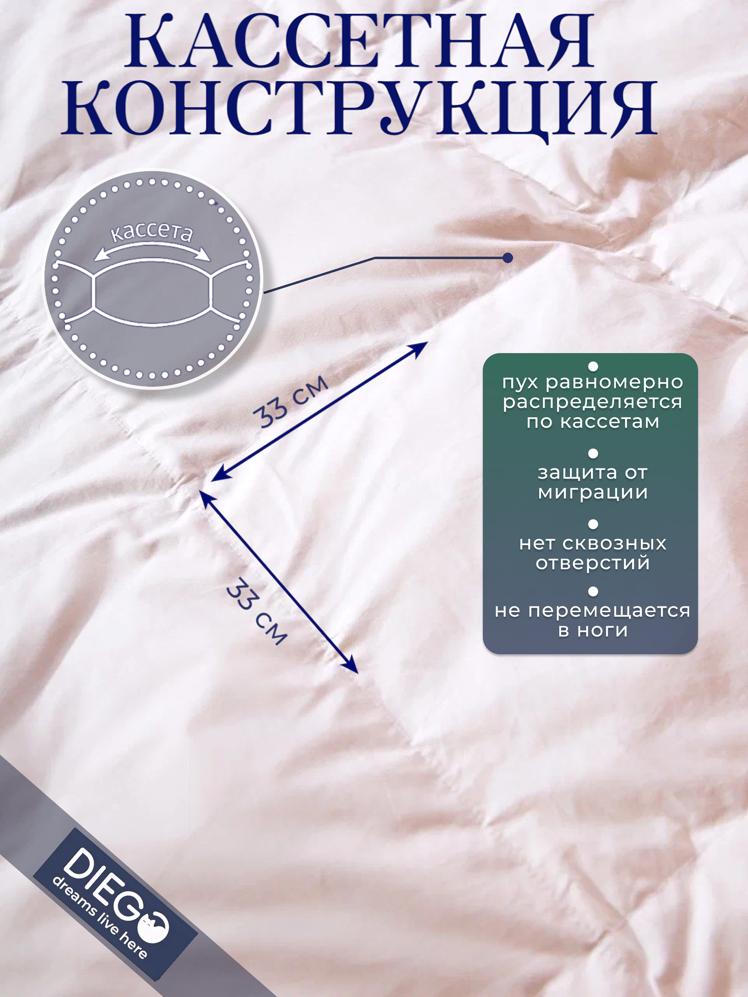 Каждый квадрат — это отдельная кассета с пухом, отделённая от другой внутренними перегородками.