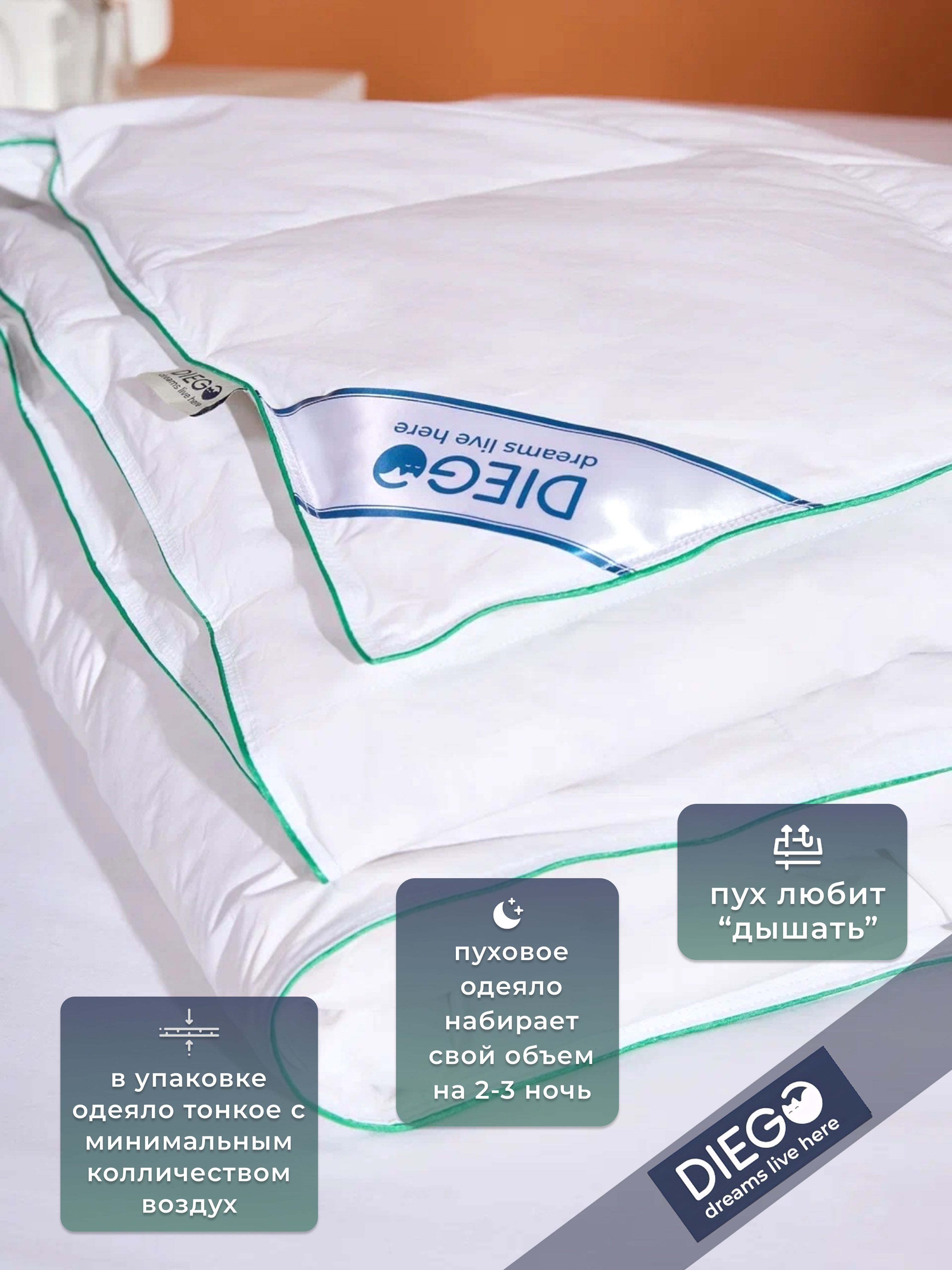 Одеяло «Летний сон» от Diego — лёгкое, пышное, натуральное и тёплое. Настоящий комфорт круглый год.