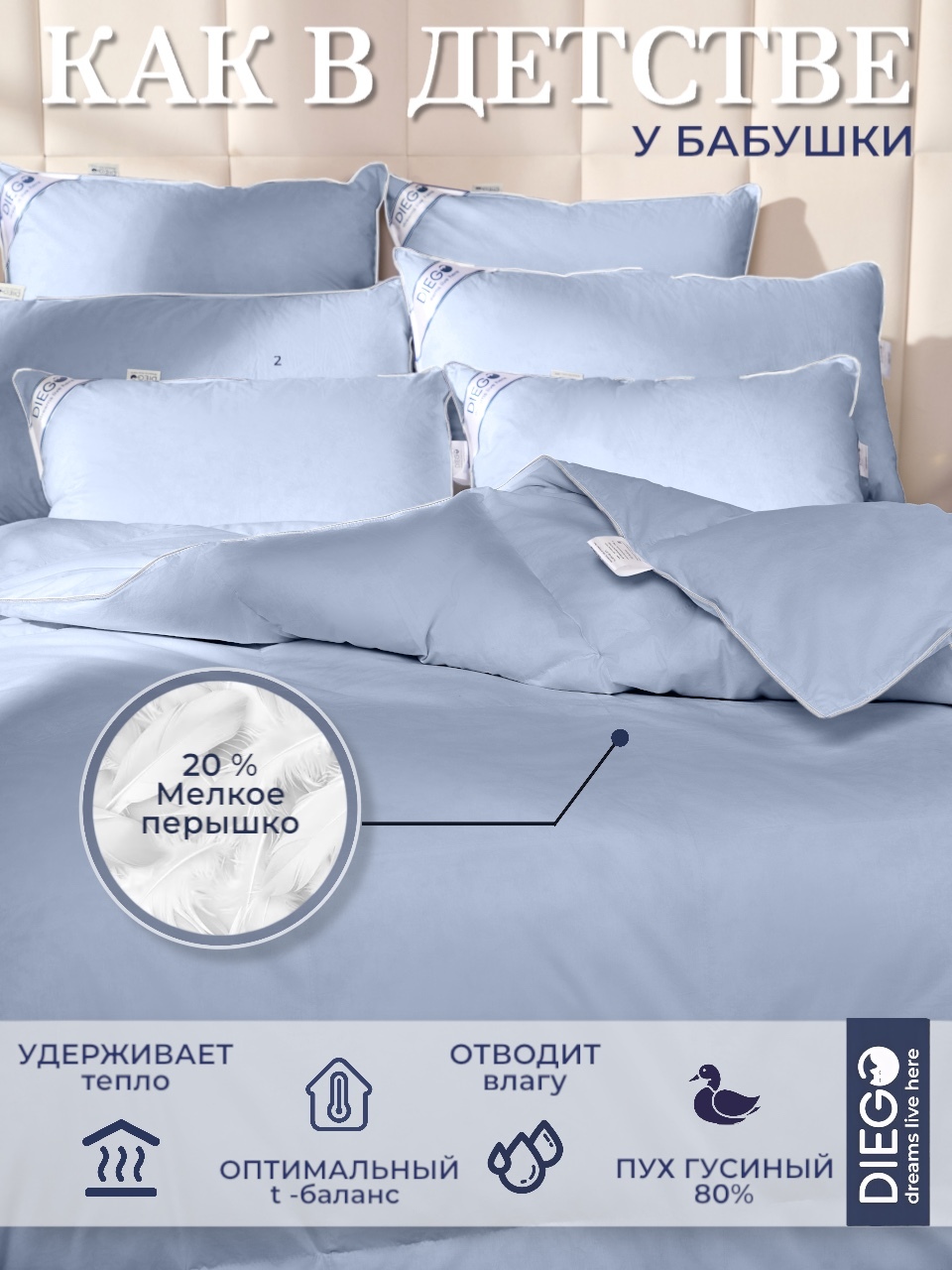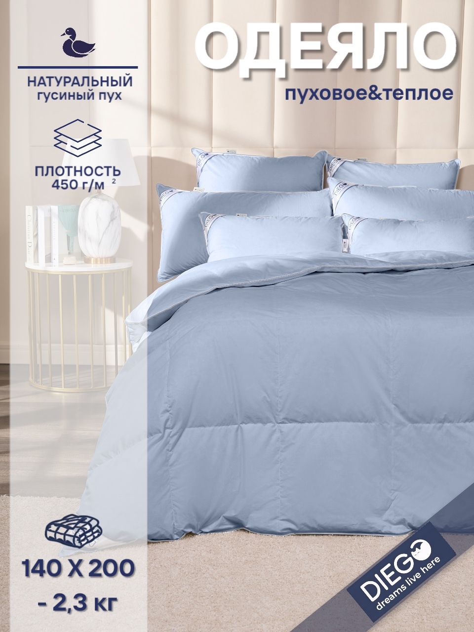 Одеяло пуховое Вега теплое от DIEGO - это идеальное решение для тех, кто ценит тепло, комфорт и качество.
