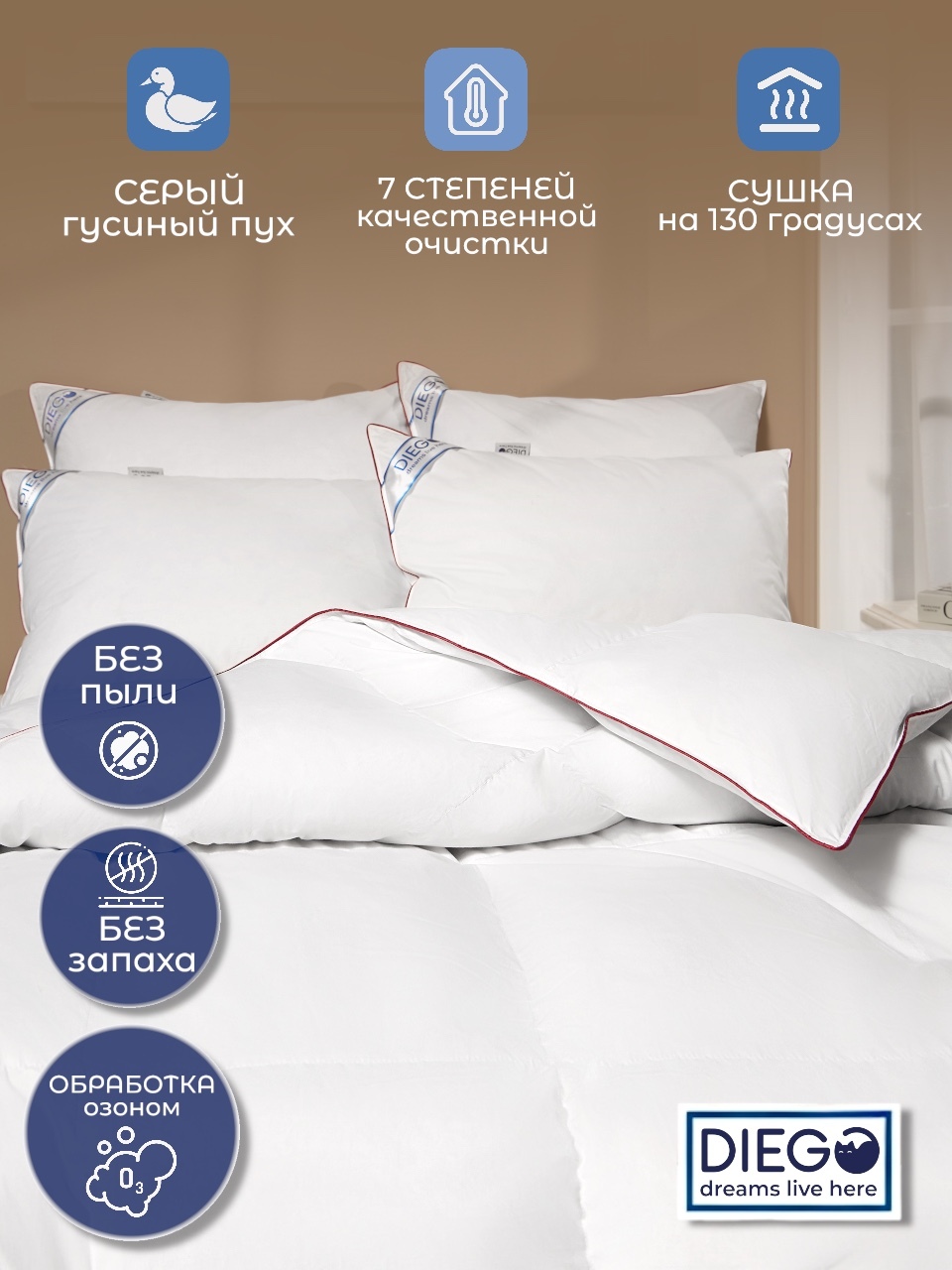 Гусиный пух создает оптимальный микроклимат, а перышко не дает пуху слеживаться и помогает поддерживать объем одеяла, что бы оно оставалось пушистым и уютным.