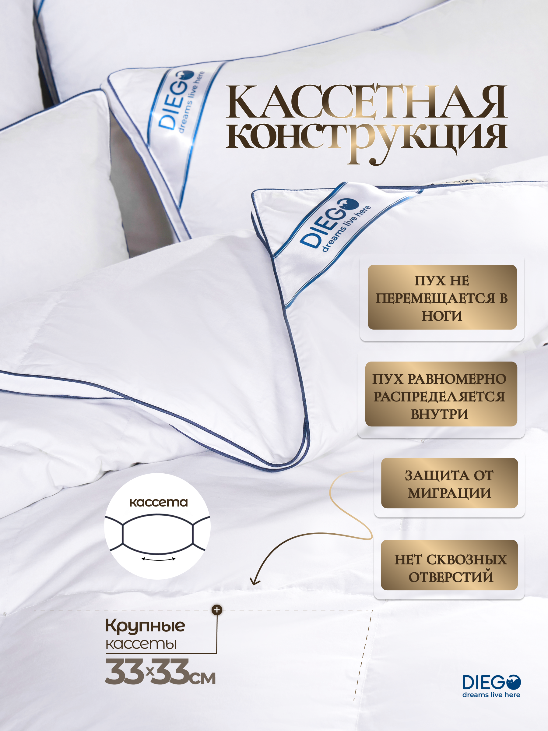 Каждый квадрат — это отдельная кассета с пухом, отделённая от другой внутренними перегородками.