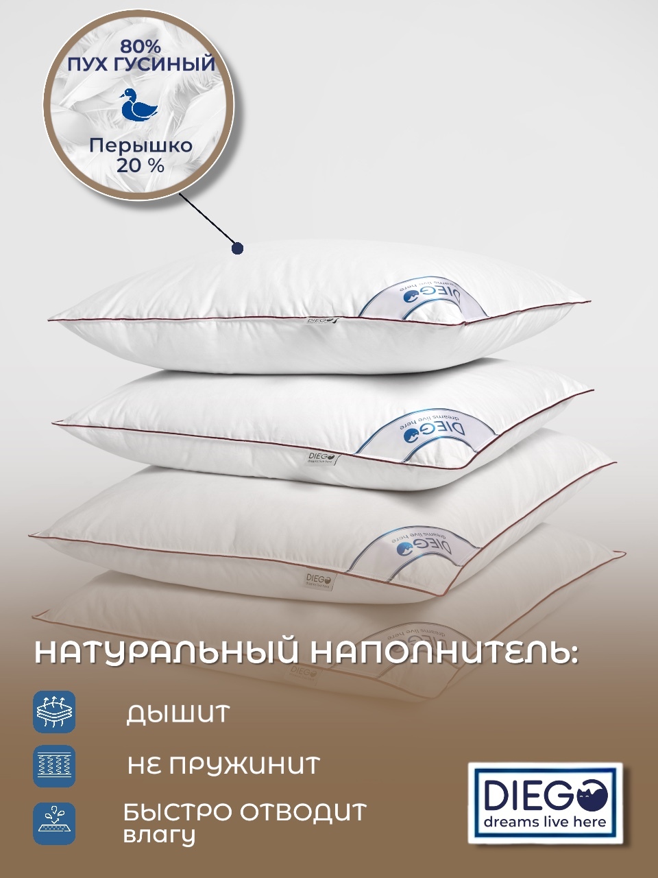 Подушки коллекции «Прованс» — гусиный пух/перышко, средней жесткости и плотности