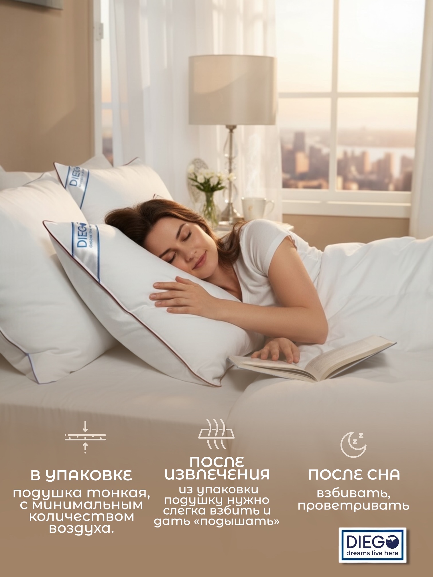 • Подушки поставляются в упакованном виде для удобства транспортировки и хранения в сумке на молнии.