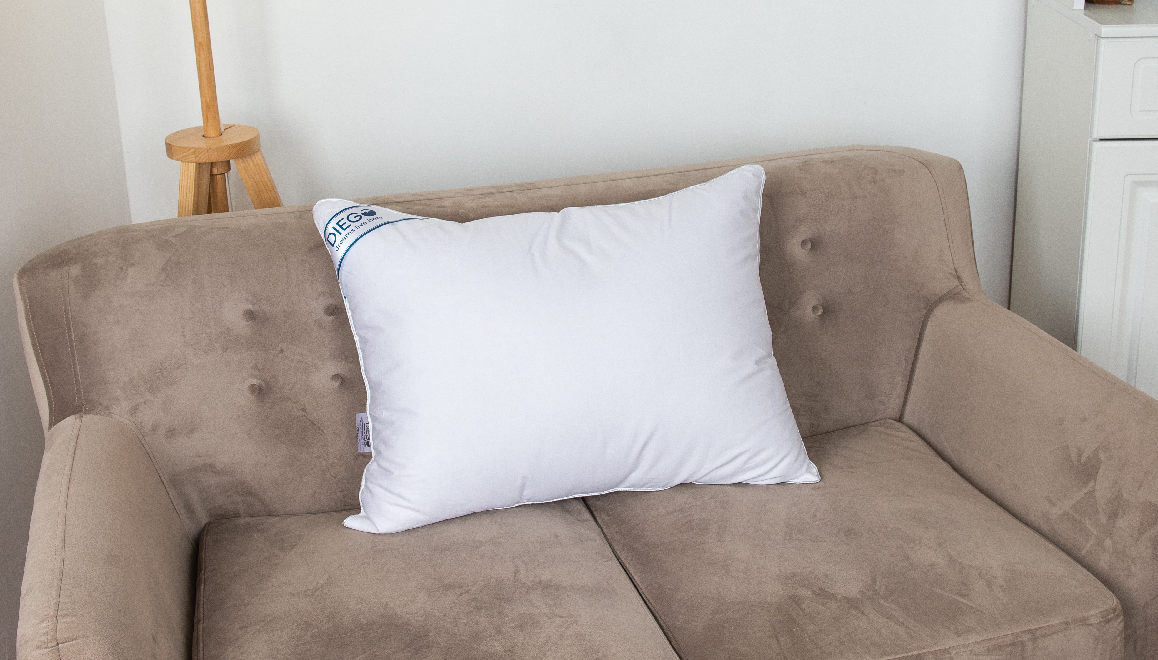 Чехол выполнен из ткани плотного саржевого плетения 100% хлопка, которое надёжно удерживает пух внутри, дополнительная пропитка для защиты от миграции пуха делает ткань подушки немного шуршащей.