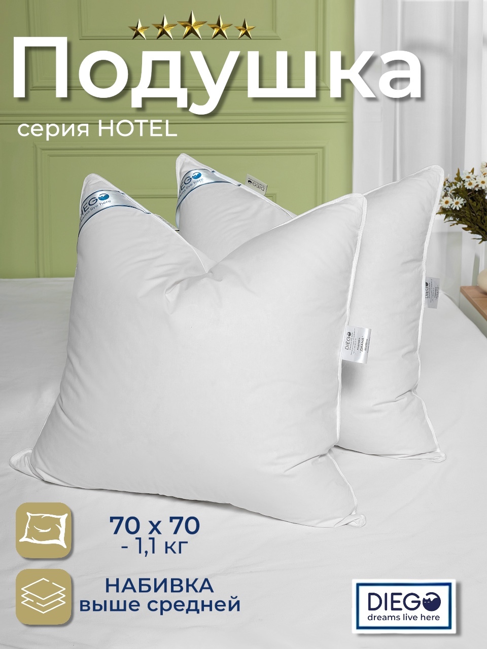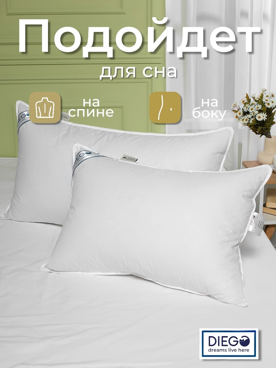 Подушки коллекции «Диана» — гусиный пух/перышко, средней жесткости и плотности
