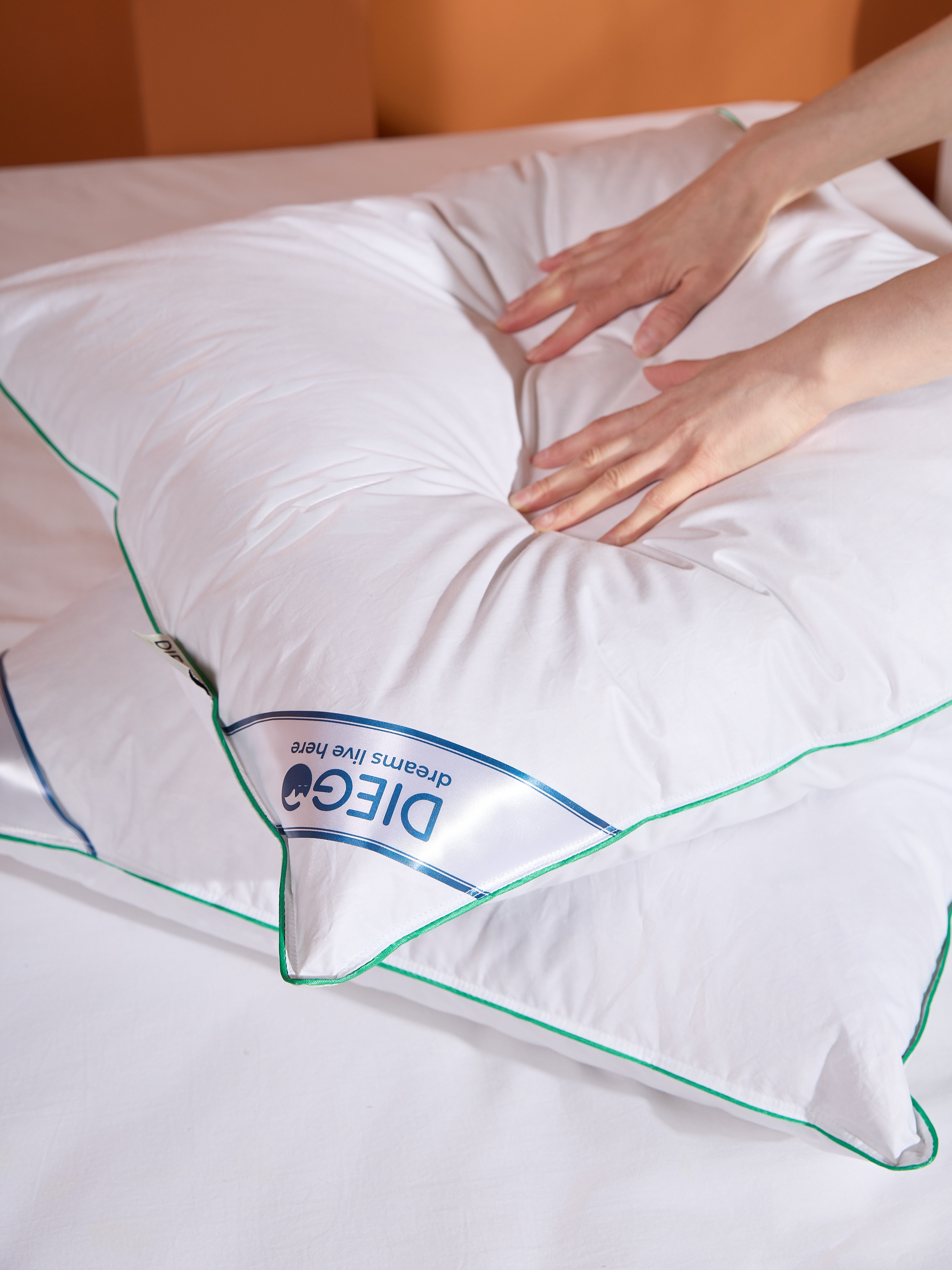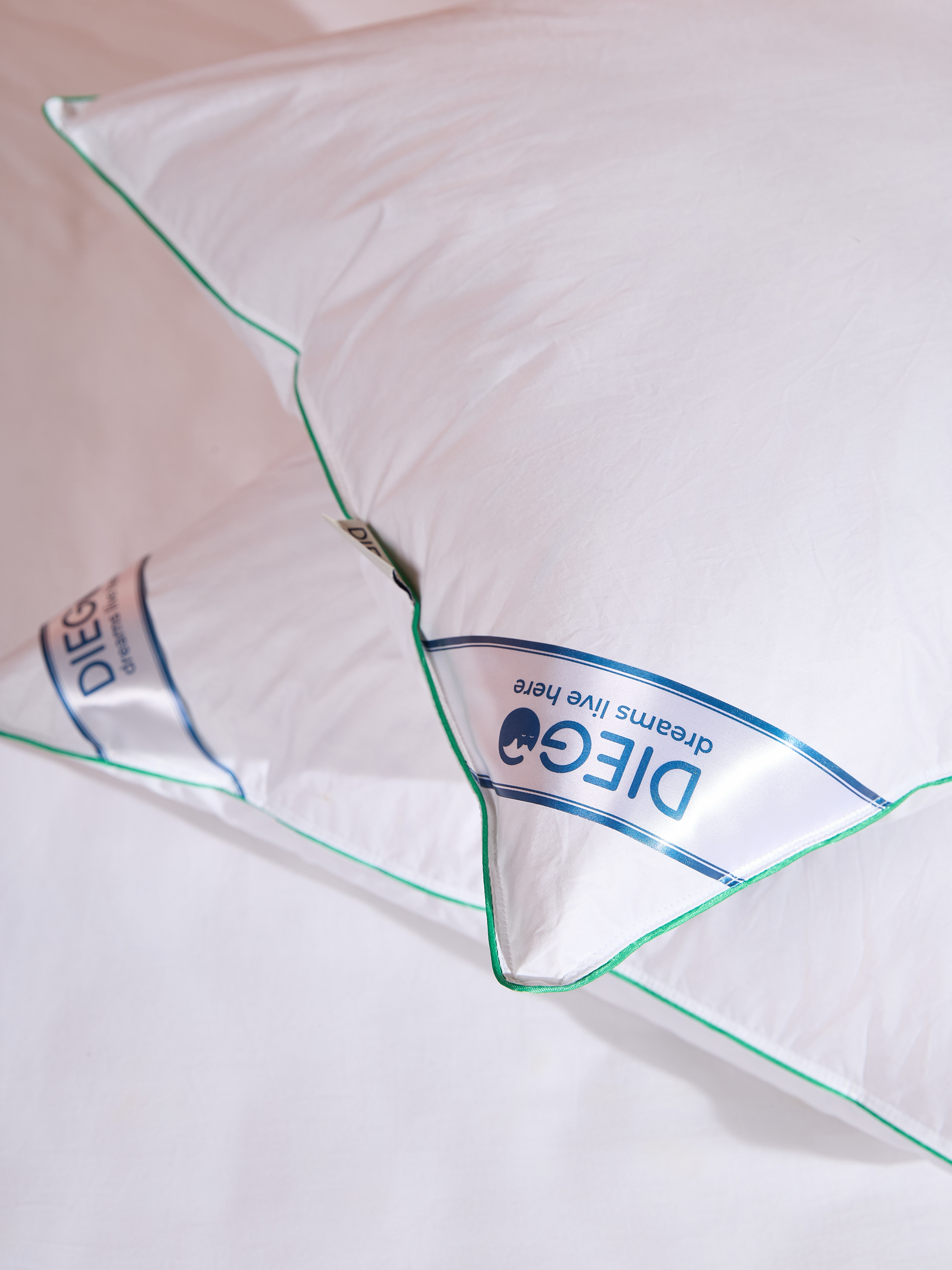 Подушки коллекции «Летний сон» — гусиный пух/перышко, мягкая, поддержка средняя, ближе к низкой.