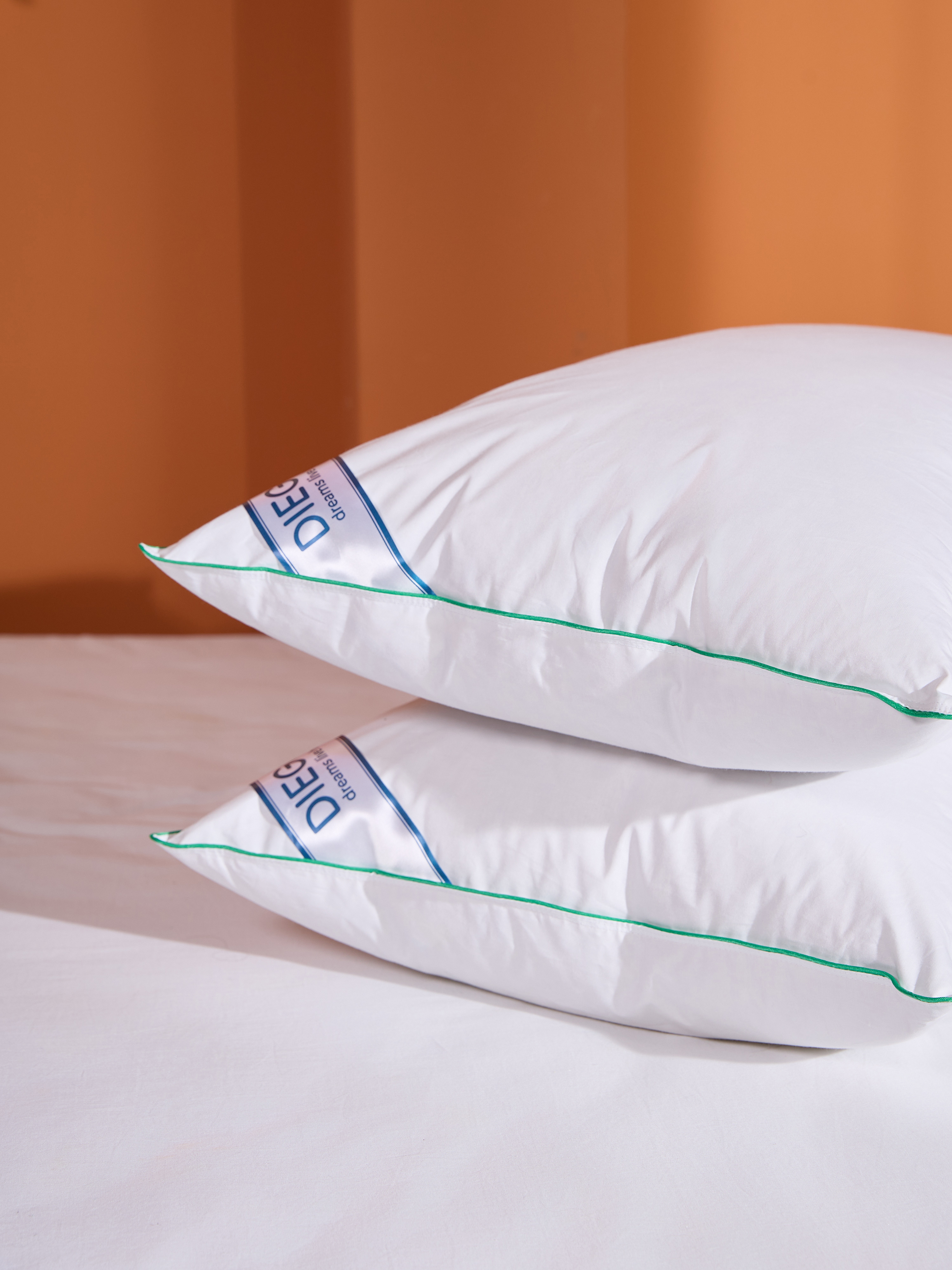Подушки коллекции «Летний сон» — гусиный пух/перышко, мягкая, поддержка средняя, ближе к низкой.