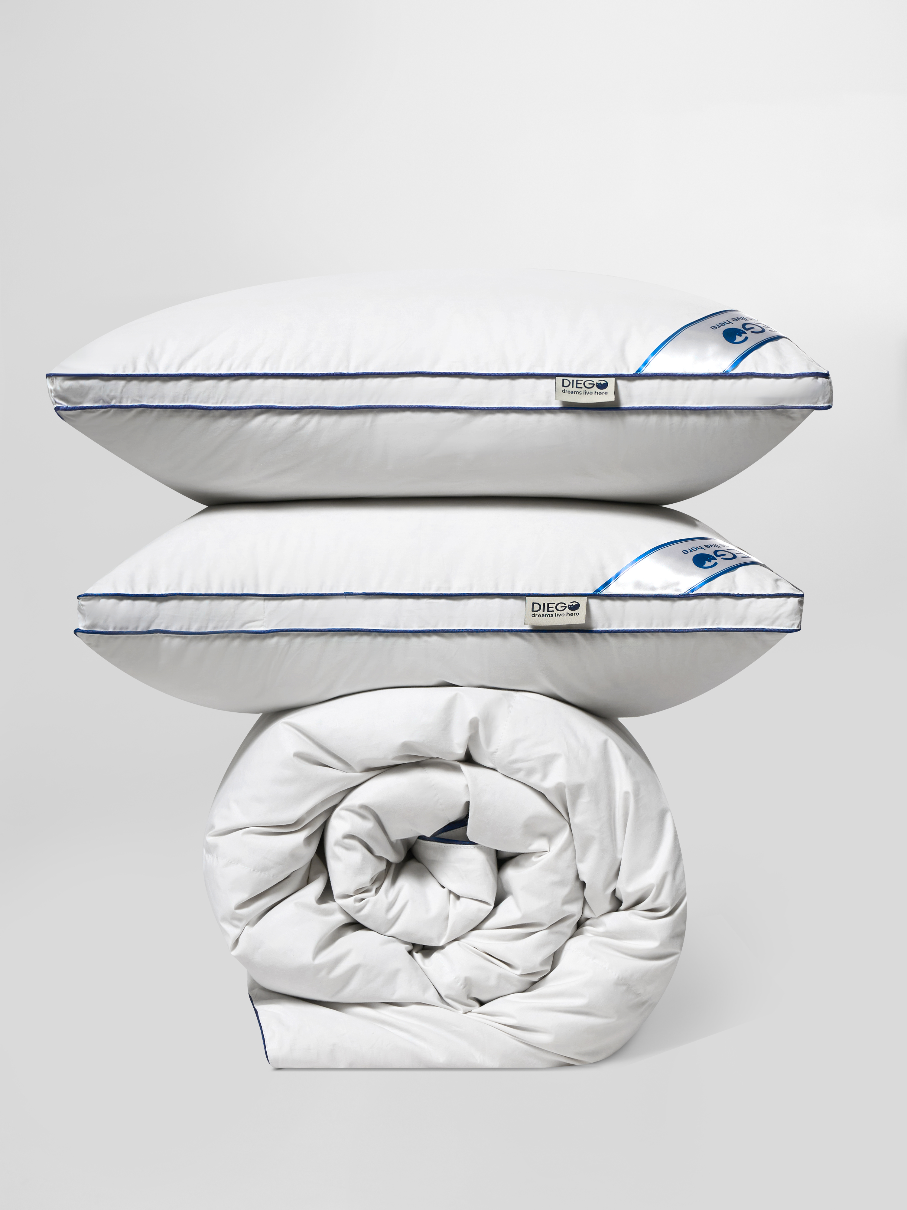 Пух категории Экстра и 100% хлопок. В составе только натуральные материалы. Перышко в составе (10%) практически не ощущается, но придает изделиям дополнительный объем, увеличивает срок эксплуатации, предотвращая слеживание пуха. Подушка обеспечивает поддержку головы в любой позе спящего.