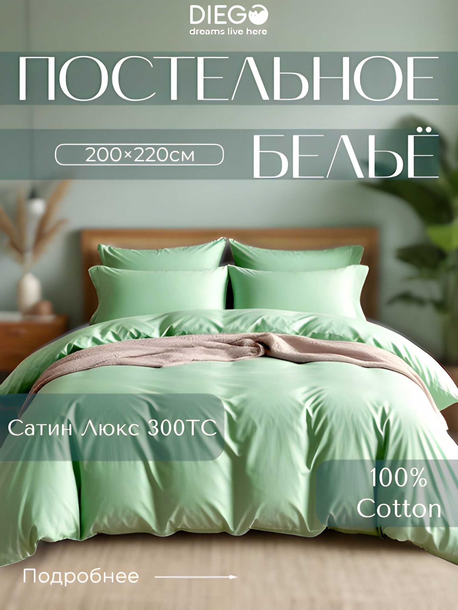 Откройте для себя комфорт и стиль с постельным бельем высокого качества Diego в размере 200х220 см. Этот комплект изготовлен из хлопкового сатина с плотностью 300 ТC, что гарантирует долговечность и мягкость на ощупь. Хлопковый сатин отличается отличной воздухопроницаемостью и способствует поддержанию оптимальной температуры во время сна.