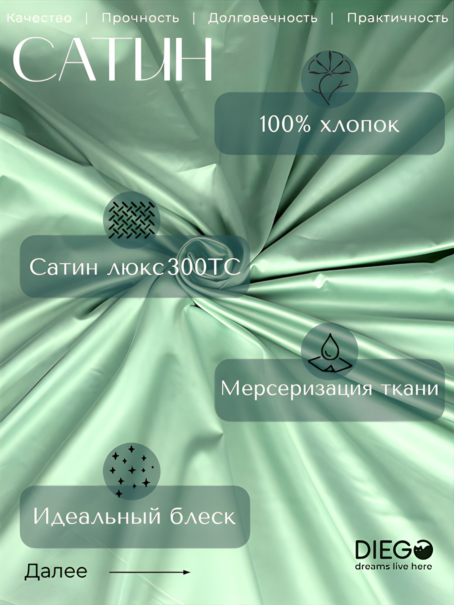 Постельное белье Diego – это не просто текстиль, это вклад в ваш комфорт и качество сна. Позвольте себе наслаждаться каждой минутой отдыха, укрываясь в прекрасном комплекте, который выполнен с вниманием к деталям и заботой о ваших потребностях. Создайте идеальное спальное место с этим комплектом, чтобы каждый сон приносил радость и отдых.